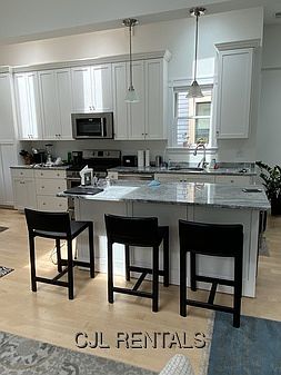AVAILABLE AUGUST 1st! MUST SEE THIS BEAUTIFUL 2 BEDROOM/2 BATH CONDO ON 2ND FLOOR! PET NEGOTIABLE! Newly renovated with attention to details. Open-concept floor plan with high ceilings and skylights. The kitchen has 48" high custom cabinets, granite counters, stainless appliances including a GAS STOVE and wine cooler! In-unit washer & dryer, private deck off the kitchen and assigned storage in the basement. Tasteful lighting, Pella windows, maple wood flooring and crown moldings pull it all together! GREAT LOCATION - walk or bike to do daily errands, close to public transportation and T-Station, shopping, parks, trails and more! NO SMOKING!