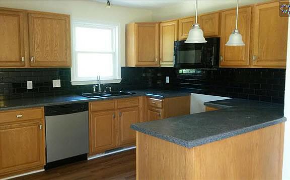 This newly renovated home is centrally located and features many nice upgrades. The great room is welcoming with fireplace, vaulted ceiling (with skylights) and ceiling fan. Fresh paint, updated features, and new flooring (with exception of existing flooring in bath in master BR) are displayed throughout the house. Large backyard is ideal for entertaining, extra parking, or just relaxing on brand new deck. Large storage room attached to back of house is an added feature. New toilets installed in both bathrooms and new vanity in hallway bathroom. Exterior has new roof (2014), new vinyl siding (2015) on all sides, and HVAC system, installed in 2013.