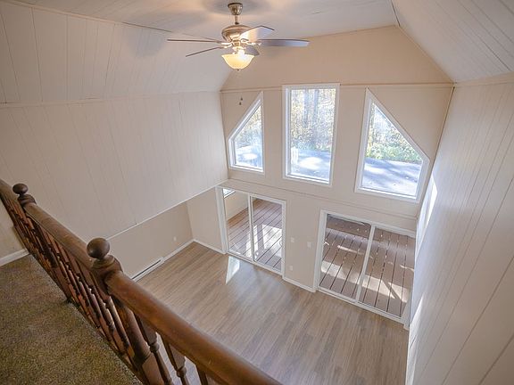 A vaulted ceiling in the living room is overlooked by the loft balcony, which provides plenty of space for recreation or a work-from-home office. All new LVP flooring is throughout the home. Fresh paint inside and out.
