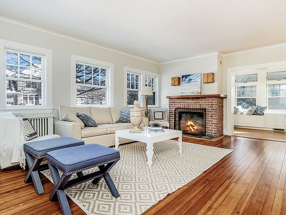 Charming Colonial in desirable neighborhood. One block from Rye Town Park & Beach and easy walk to schools, shops and more. Inviting entry foyer boasts brick fireplace, built-ins and window seating and opens to sunlit living room with brick fireplace. Formal dining room, eat-in kitchen and office/den complete the first floor. Upstairs living space includes master bedroom with bath, three bedrooms and hall bath with wainscoting and claw foot tub. Home features two fireplaces, hardwood floors and numerous windows for ample natural light. Sited on .21 level acres with one-car detached garage and patio. Expansion possible.