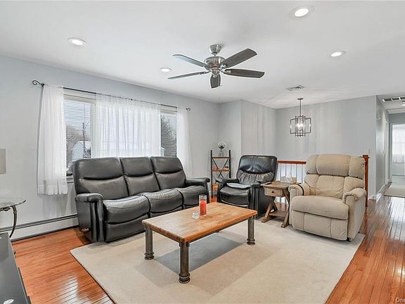 New on market in Washingtonville school district this 1736' sq. ft. home has a lot to offer, 3 bedroom, 2 bathroom well-maintained with an updated kitchen cabinets with self closing drawers, granite countertops and stainless steel appliances. Freshly painted. Ceiling fans in all bedrooms, living room and kitchen. Walk-in spacious closet. Hardwood flooring in living room, hallway, dining room and staircase. Ceramic tile flooring and walls in bathrooms. Kitchen with ceramic tile flooring and ceramic tile backsplash. C/air throughout and thermal windows. Dining room with slider opening to 20 x 20 spacious deck with canopy for family gatherings overlooking a new 24' diameter aluminum above ground pool for hot summer days and landscaped green yard. 10' X 10' shed for extra storage. Two car garage with openers. Municipal water & sewer. Spacious paved driveway. Easy access location to major roadways and train. Short drive to town with services and amenities. Ready for new owner to move in.