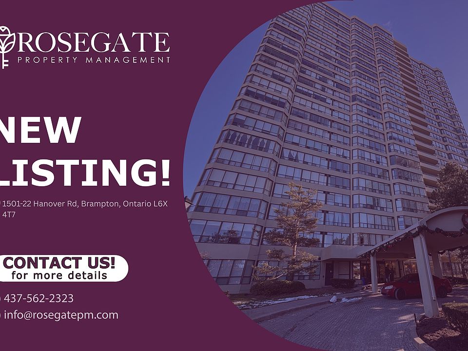 2-Bedroom + Den Corner Condo with Garage & Parking in Brampton Welcome to 1501-22 Hanover Rd, Brampton a rare and spacious corner unit condominium offering approximately 1,500 sq. ft. of well-designed living space. Featuring 2 bedrooms plus a den (which can be used as an additional bedroom) and 2 bathrooms, this home is ideal for families or professionals seeking space, comfort, and exceptional value.The open and functional layout includes bright living and dining areas, a generous kitchen, and large windows throughout the corner unit that fill the space with natural light. The versatile den is perfect for a home office, guest room, or third bedroom. Additional highlights include two parking spaces, a private garage, and corner-unit privacyfeatures rarely available in condo living. Professionally managed by Rosegate Property Management, this Brampton rental is conveniently located near transit, shopping, parks, and major highways, making it an outstanding opportunity for premium condo living in Ontario.