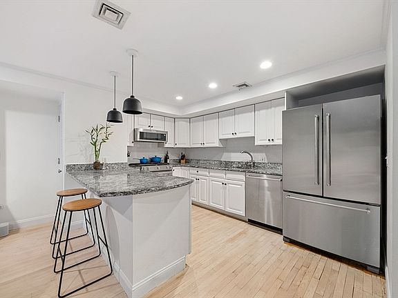 Eight Streets Gem! This gorgeous 2 bed, 1.5 bath lower duplex is the one you have been waiting for with the perfect floor plan for the entertainer. The living level features a spacious and stylish kitchen with granite counter tops, large breakfast bar for counter seating, stainless steel appliances and gas cooking with ample storage space. Separate dining area and adjacent living area with custom built-ins and fireplace. Double glass floor to ceiling sliders open onto a private, beautifully landscaped patio and garden. Upper level features a spacious primary bedroom with ample space for a king size bed and furnishings, second bedroom suitable for queen sized bed and/or nursery/office. Recently renovated bathroom with vanity storage and tub/shower. Hardwoods throughout. All this and central A/C, in unit washer dryer and exceptional storage. Next to lovely Ringgold park and minutes to the best of the South End’s restaurants, shops, freeways and Back Bay Station