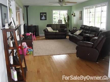 Bright, sunny and newly renovated describe this must-see ranch style home on 1+ acres of beautifully landscaped land. Main level features spacious mudroom, separate laundry room off a open-concept kitchen. Kitchen has been updated with new cabinets, sink and fixtures as well as beautiful ceramic tile flooring. Sliding doors off of the eating area open onto a partially covered backyard deck perfect for entertaining. Living room and hall has newly installed hardwood floors. A pellet fireplace in the living room heats the entire main level during the cold season. Master bedroom has a walk-in closet and half bath. Second bedroom on main level is sunny and spacious. Both rooms have new berber carpeting. Full bath is oversized and features double sinks. Basement is finished with wall to wall carpet in three bedrooms and family room. There is an unfinished half bath with room for a walk-in shower if needed. Two car garage is attached with direct access to a large workshop in the basement. Private backyard has an additional storage building as well as a wooden play structure. Lawn is meticulously landscaped and is on a close-to-town culd-de-sac. Call Matt @207 745 1319 for more info or to schedle a viewing. Additional property info: http://www.forsalebyowner.com/listing/0CDCB?provider_id=28079