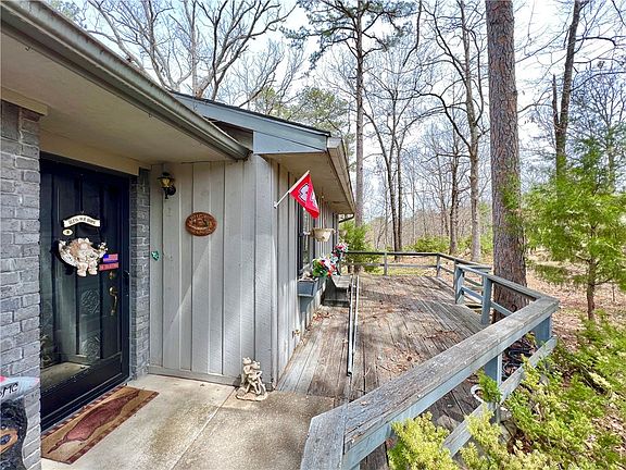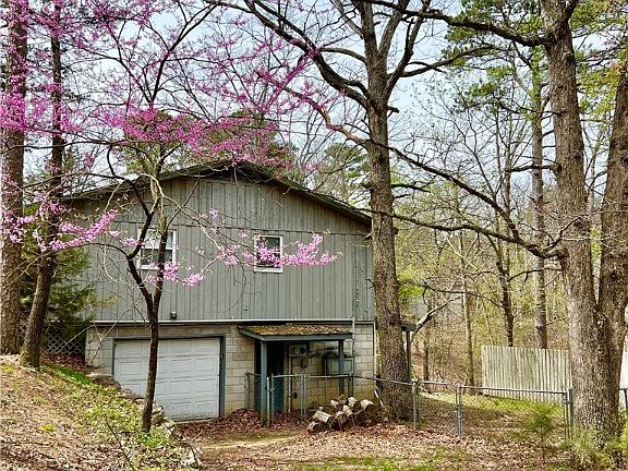 This charming house has 3 bedrooms , 2 full bathrooms ( 1 in the primary bedroom ),a dining area with a fully equipped kitchen including a gas range, dishwasher, trash compactor, and side by side refrigerator. There is a fully enclosed all season sun room. There is a 2-car garage on street level and a 1-car garage in the basement. Great windows offer plenty of natural light, and a nice circle driveway and a fenced back yard to add to the appeal. The location is fantastic, near downtown and grocery stores. The property sits on a spacious half-acre lot on the corner of a quiet street and great Eureka Springs neighborhood.