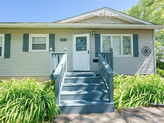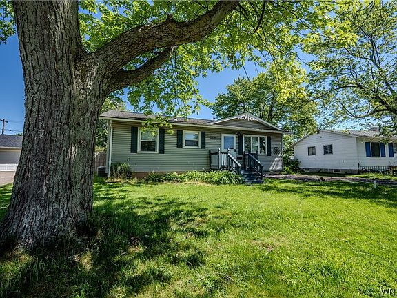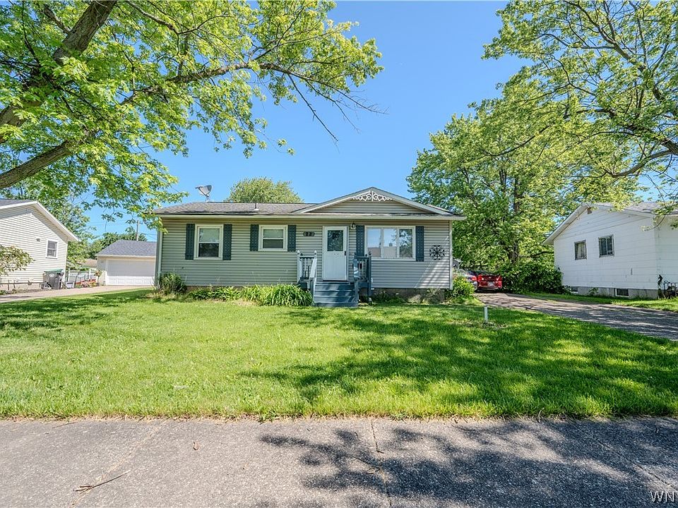 Welcome Home! This adorable 3 bed Ranch won't last long! Very desirable Tonawanda home with easy access to the I-290 and Twin City highway, shopping and attractions. The front deck welcomes you into a large bright living room with an open floor plan! Original re-finished hardwood floors in living room and bedrooms, new modern updated bathroom with new floors and vanity, Huge eat in kitchen with new backsplash and bamboo floors. 3 good sized bedrooms, plenty of storage, Solid mechanics, new furnace 2021, central air. Partially finished basement adds additional living space. Fully fenced yard with covered patio. 2.5 car garage for additional storage.