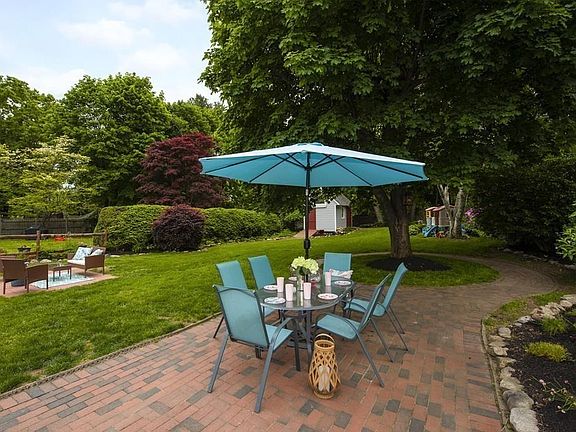 Don't miss this updated ranch with full basement, on a beautifully landscaped lot, minutes to every amenity you could need and tucked in a wonderful quiet neighborhood! Sun filled living room with bay window leads into eat-in kitchen with butcher block counters, white cabinets & gas cooking and ample counter and cabinet space. Three sizable bedrooms and a renovated full bath complete the first floor. Partially finished basement with additional family room and gas heating stove is perfect for extra family room/playroom/office! Central air/vacuum, newer roof, windows, gas high efficiency water heater & water filtration system. Exceptional outdoor spaces! Stunning patios and lush yard of your dreams with two patio spaces, play area and shed for storage. Perfect commuter location with quick access to routes 30/126/9 and Mass Pike, as well as plenty of shopping, restaurants, parks & more!! Not to be missed!