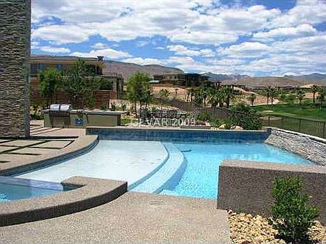Redhawk at The Ridges in Summerlin - Modern flair with excellent golf, mountain and city viewsFeatures Acres: 0.48 Property Subtype: Single Family Residential PropType: Single Family Res County: Clark County YearBuilt: 2009 ElemSchool: Goolsby Judy & John Year Round: No Junior High: Fertitta Frank & Victoria HighSchool: Sierra Vista High Appx.Sq.Ft.: 9500GarageSpaces: 8 GarageType: Attached, Entry to House, Finished, Auto Door Opener(s) Carport Spaces: 0 #Bedrooms: 5 + Den/Other#Baths(Full): 5 #Baths(3/4): 0 #Baths(1/2): 2 #Baths(Total): 7 # of Fireplaces: 3 FireplaceType: Gas Pool: Y Heated, Inground, PoolspaSpa: Inground, Outdoor, Waterfall Zoning: Single Family LotSizeSqFt: 20909 Water: Public Cooling: 2 or More Central Units, Central -------------------------------------------------------------------------------- Dining Room: Formal Dining Room Living Room: Formal, Front Family Room: Downstairs, Separate Family Room Floors: Marble/Stone, Carpet, Hardwood Heat Fuel: Gas Heat Desc.: 2 or More Units, Central Kitchen: Breakfast Bar/Counter, Custom Cabinets, Island, Breakfast Nook (Eating Area), Walk-In Pantry, Marble/Stone Countertops, Marble/Stone Flooring House Faces: South Assoc/Comm Features Desc: Guard Gated, Gated, Exercise Room, Tennis Courts, Community Pool, Community Golf, CCRs, Clubhouse Bath Downstairs: Y Master Bedroom: 2 Mbr's, Balcony, Dressing Room, Mbr Walk-In Closet, Sitting Room Fence: Block, Wrought Iron Refrigerator: Yes Disposal: Yes Dishwasher: Yes Washer/Dryer: Both Bedroom Downstairs: Y Oven/Range: Cooktop (G), Double Built-In Oven (E), Warming Drawer, Convection Oven Misc.: Home Protection Plan Subdivision Name: SUMMERLIN VILLAGE 18 PARCEL E Dryer Included: N Model: CUSTOM Landscaping: Drip Irrigation/Bubblers, Desert Landscaping, Front Sprinkler System, Mature Landscaping, Shrubs Roof: Tile, Pitched Utility Info: Cable TV Wired, Underground Utilities Energy Feature: Dual Pane Windows Fireplace Location: Family Room, Great Room, Mast