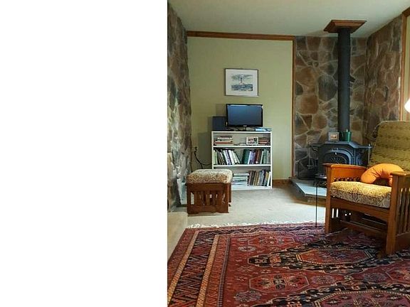 - Fireplace features: wood stove
