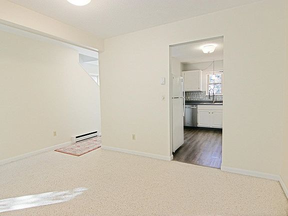 You'll love this bright sunny end-unit offering 2 bedrooms, 1.5 baths, and a garage! Enter to a slate foyer with coat closet plus an additional closet in nearby hallway. The kitchen offers newer vinyl plank flooring, plenty of cabinet and counter space, plus some stainless appliances. Continue into the dining room and living room separated by a beautiful brick hearth with woodstove. You'll love the open floor plan with extra windows in the living room and your plants will love the adjoining sunroom! Head out to the private back deck to enjoy your morning coffee or BBQs in the warmer months. Upstairs you'll find two oversized bedrooms with closets and a full bath with convenient 2nd floor laundry. Plenty of storage throughout plus the detached garage offers space for bikes and other outdoor gear. Recent upgrades include newer windows, new lighting, Berber carpeting, and fresh paint. Private neighborhood surrounded by woods yet only a couple minutes to Tafts Corners and Maple Tree Place with shopping, restaurants, and more! Plus enjoy easy access to the airport, Burlington, and mountain activities as well! One dog or cat allowed. This unit can be purchased as an investment/rental property.