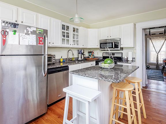 This classic two-bedroom, second floor condo is a short walk to downtown and very close to all commuting routes, restaurants and outdoor activities. Spacious and sun-drenched, this unit has all the charm that you would expect such as bay windows and wide plank pine flooring yet many updates such as modern kitchen with granite counter-tops and stainless steel appliances and modern bathroom. Off street parking in addition to a single car garage with plenty of storage both in the unit as well as the common basement. If you like the charm of an older home, this is the perfect spot for you.