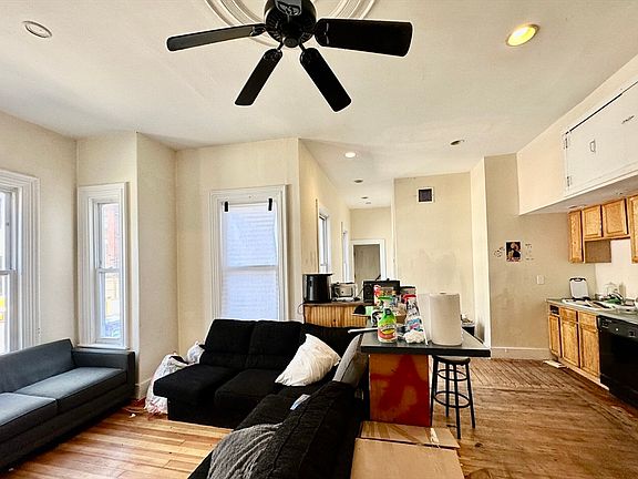 Massive 8 bed 3 bath house in Allston near BU's West Campus and Harvard Business School. Three full floors plus basement. Backyard space, Central air, hardwood floors, parking, enormous basement with laundry, and large living room. Shared backyard. 4-5 parking spots for rent. Close to Allston's best shopping and restaurants. Easy access to the 57 Bus, Green line, BU shuttle, and multiple highways. This is a single family with no shared spaces, connected to 20 Highgate on one side. Available 9/1/25.
