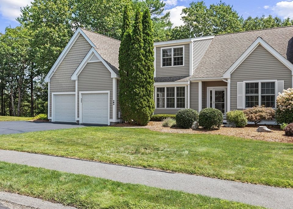 Best Value in Westford’s most beautiful over 55 community. Spectacular home at The Village at Stone Ridge. Main level offers a grand living room with cathedral ceilings and gas fireplace, large modern kitchen with piano finish custom cabinets, S/S appliances and quartz counters, sun filled home office with generous built-ins, primary suite featuring spacious walk in closet and custom modern bath. Large second bedroom & additional full bath complete this level. Need additional space? 2nd floor offers a large loft, 3rd bedroom, full bath and ample storage. The lower level is a true show-stopper. Massive media room, 2nd kitchen, full bath and additional home office/study. Addtnl ftrs include gleaming hardwood, 2 car garage, generator, central air, custom moulding, gas heat and updates galore. This lovely professionally managed complex offers manicured grounds, walking trails and a clubhouse. Don't miss out!