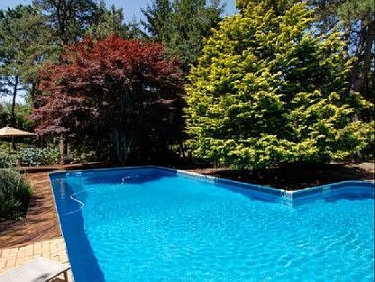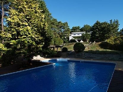 With 5 bedrooms, open modern kitchen and great room, central air, 5 TVs, laundry room with washer and dryer, wet bar, Swedish sauna, 2 full decks, heated L-shaped swimming pool on fully landscaped one acre.
