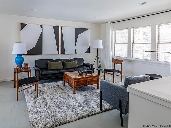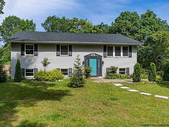 Fully renovated but with room to dream, on your timetable! This stunningly re-invented raised ranch on almost 7 private acres is now long on style, with a renovated open kitchen and dining area with all-new appliances and a 36-inch stainless-steel farm sink, opening to a large tri-level deck and fire-pit area. Roomy bedrooms and an open plan create a sense of space and light that mesh seamlessly with the surrounding woods. Other upgrades include 3 refreshed bathrooms, painted floors, stylish light fixtures, and a brand-new roof, furnace and hot-water heater. The lower level features enormous living space, complete with a separate entrance and full bath for potential short-term rental or in-law use. Settle in, enjoy, and when you're ready, point your imagination outdoors. The terraced acreage, nestled amidst picturesque horse farms, offers potentially spectacular Catskill mountain range views, with some clearing, or even bigger opportunities, with subdivision plans for 1 to 2 build-able lots already drawn, if you choose. There's also a large and solid outbuilding, once used as a dog kennel, discreetly sited below the house, that's ripe for re-invention, plus already-fenced pet-run areas and even a chicken coop and roomy shed. Less than 2 hours from Manhattan and convenient to both the hot Kingston Rondout and New Paltz, this is the rare homeplace that offers a turn-key refuge.