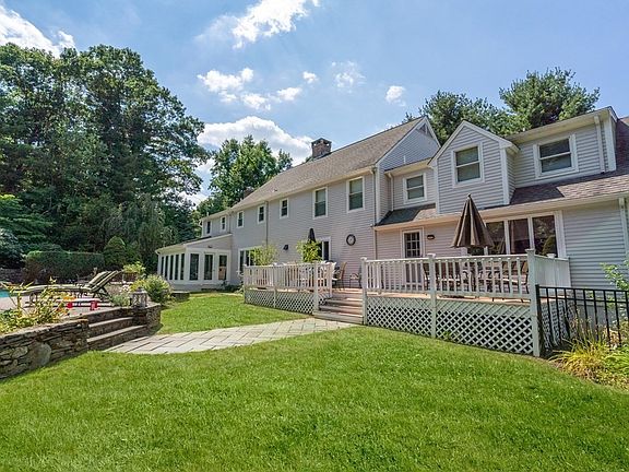 This elegant colonial home has been beautifully renovated and offers more than 5,000 SF of living space providing a glorious setting for indoor-outdoor living. Well-sited on nearly an acre of professionally landscape grounds including a stunning gunite swimming pool and hot tub, this special property is truly a private retreat only minutes from Boston. Enjoy magical views of Duck Pond and easy access to Land’s Sake Farm and Weston’s bike path. The first floor features a handsome living room and gracious dining room each with a wonderful wood burning fireplace. The striking kitchen with quartz countertops, large center island, professional appliances, and breakfast room flows seamlessly to the family room and adjacent office. The expansive primary suite has two full baths, two walk-in closets, and a lovely sitting room. There are three additional bedrooms each with a bath. The expansive lower level offers additional recreation space. This special property will appeal to all.