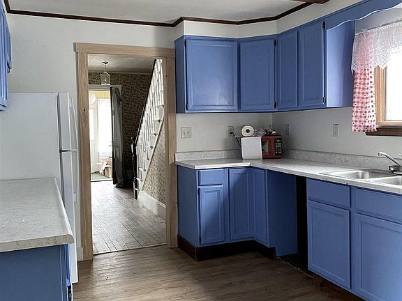 Spacious 3 bedroom, 2 bath gambrel style home is sited on a large .59 acre in-town lot. Many updates include, an efficient new boiler, hot water tank, newer asphalt shingles, hard wired smoke detectors and updated electrical. There's an attached (20' x 22') 2-car garage and breezeway/mudroom that leads to the kitchen. There's a convenient first floor laundry. A 3/4 bath is adjacent to the dining room, which could serve as a first floor bedroom. A spacious living room is open to the foyer. The second story features 3 bedrooms and a full bath. Hardwood floors throughout the home. A finished sunroom offers 3 season use. Ample storage space available in the walk-up attic and a 2 level detached barn which would also make a great work shop. Snow machine and ATV trail systems can be accessed just down the street.