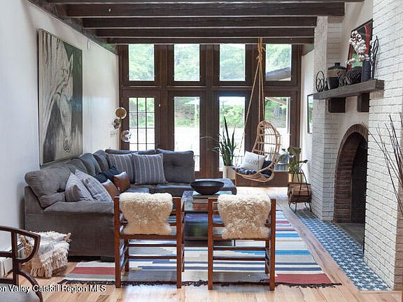 Welcome to this bright and airy Woodstock home, perfect for long-term stays. Spread out and relax with three large living rooms that offer ample space to unwind. The house accommodates up to 8 guests with 4 bedrooms and 3 full bathrooms. Pets are considered on a case-by-case basis, but approval is unlikely. The property boasts 2 outdoor fire pits and 2 indoor fireplaces, perfect for cozy evenings. Situated on a quiet 1-mile loop, it's great for walking or biking, with bikes provided. The house also includes a 2000 sq ft deck, BBQ grill, basketball court, and a large, private garden. You cannot beat this location. This house is just a 3-5 minute drive from the Village of Woodstock, you'll find an organic grocery store, restaurants, shops, and events nearby. It's also a 3-minute drive to the Woodstock Golf Course, 15 minutes to Kingston and Saugerties, and just 4 minutes to the Ashokan Rail Trail dike trailhead. A Hannaford Supermarket is just 2 minutes away. Electricity is paid by the tenant, and a cleaner is required twice per month at the tenant's expense. The owner will cover heating. This retreat is available from February 1 - April 30 at 7,000 per month and from May 1 - August 31 at 26,500 per month, reflecting the demand for a resort-style escape with a heated saltwater pool during the summer. If you're looking for a 12 month rental, the monthly rent is 15,000. Garage space is not guaranteed for parking. All utilities are included for summer month pricing. Showings are accompanied by the listing agent.