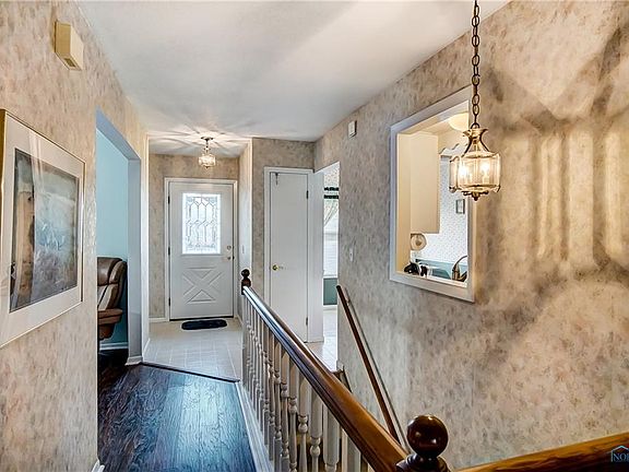 Wonderful home is ready for a new owner! Nice sized kitchen with an eat-in area. Living room offers open space w/vaulted ceiling. Rich dark laminate wood floors throughout DR & LR. Sliding door leads to back deck (with retractable awning) which offers a peaceful setting & view by the ravine & creek. Large basement for additional living/storage space. All appliances and home warranty included!