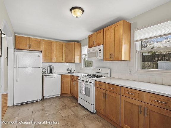 Stunning 4 Bedroom Cape on the dry side of Rt 36 in Hazlet. Totally remodeled 3 years ago and ready for the buyer who wants nothing to do but move in! Beautiful Kitchen with newer Cabinets, Quartz Counter-tops and Tiles. All newer Kitchen appliances. Solid wood soft close drawers and cabinets. Full Size newer Washer & Dryer included. Three year old Oak Hardwood Floors. Brand new wooden stair treads just added. Plenty of closet space. Gas Heat & Central Air. Two of the Bedrooms upstairs are perfect office size. Newer Vinyl Siding. Current owners added massive 10' x 20' wooden deck to an expansive park like backyard. They also added a new storage shed, privacy fencing and a raised garden bed! Nothing to do but move in! Come and see your next house this weekend only April 9-12.