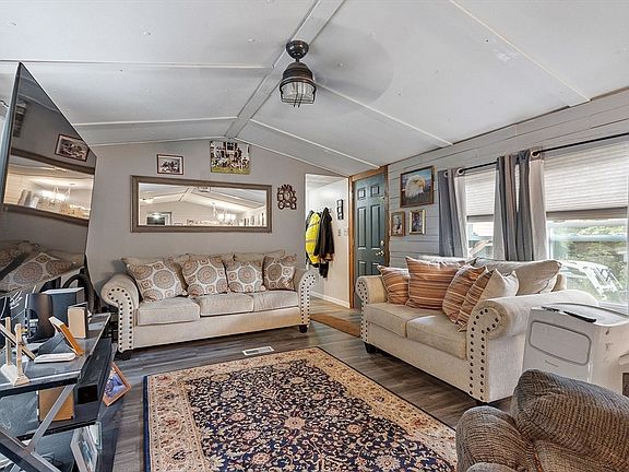 This charming two-bedroom, two-bathroom mobile home has undergone several recent upgrades, making it nice and inviting. Open Concept Living room, Kitchen and Dining area with sliders to the deck and backyard. Key updates include a Second Bathroom, New Carpeting in both bedrooms. The primary bedroom has been sheet rocked and painted. The entire home has been freshly painted as well. Exterior Improvements include the front of the home has receiving new sheathing. Enclosed 2-Car Garage and recent large shed. OPEN HOUSE SAT 8/17 FROM 11 - 1