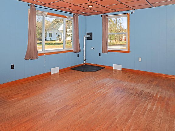 Discover the allure of this Cape-style residence featuring three bedrooms and one bathroom, perfectly situated in a quaint small-town neighborhood. The first floor welcomes you with an inviting entryway, a cozy living room, and a convenient eat-in kitchen. The well-designed layout also includes a bathroom equipped with laundry facilities and a comfortable bedroom, offering practical and comfortable living spaces. Ascend to the second floor to find two additional bedrooms and a generously sized closet, providing ample storage. The basement, with walk-out access to the backyard, unveils possibilities for both leisure and productivity. A small storage room, ideal for a home office, complements the versatile functionality of this space. Outside, the property boasts a desirable in-town location, ensuring proximity to schools and shopping for added convenience. The backyard is a delightful retreat with a nice fire pit and large deck, creating a charming setting for outdoor gatherings.