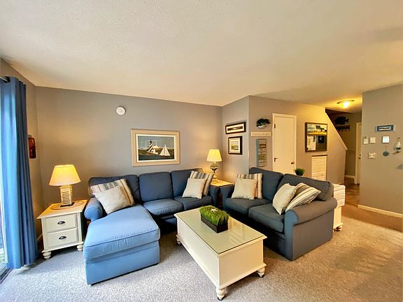 The desirable 2-story, C-style townhouse is nestled in the quiet Howland Village at Ocean Edge. A beach inspired decor is the motif carried through out 22 Howland Circle. Enter into the full kitchen with window and attached breakfast bar spanning a view of the entire living and dining area. Enjoy your summer evenings on the fresh flower lined patio and manicured landscaping. Bedrooms located on the 2nd floor are separated by the renovated full bathroom and stackable washer/dryer. Beat the summer heat with mini split AC units upstairs or get toasty with the gas space heater downstairs. Take this opportunity to bask in all that Howland Village has to offer - year round, seasonal or rentals. 22 Howland Circle is the townhome that is waiting for you at Ocean Edge! Property sold mostly furnished, minus sleep sofa, love seat, chair, end, sofa & cocktail tables and front bedroom dresser along with personal items.