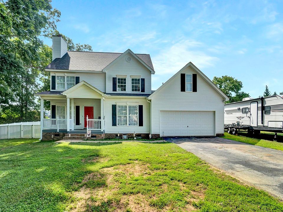 Popular style two story home in an established neighborhood. Close to neighbors and friends, but outside of the hustle and bustle of city life and traffic. This beauty sits on over a half acre and has room to park your boat or RV. Plenty of shade trees and a fenced back yard, so bring the furry family members and your grill! Feel the breeze on the rocking chair front porch this summer or spend your time on the back deck relaxing. Inside with just over 1500 square feet and 4 bedrooms, the floor plan is open and flexible. The dining room is currently being used as a playroom, but could easily hold your farm table. Host dinner parties with the easy flow of the dining area and living area. This fall you will love the cozy gas log fireplace. The well equipped kitchen boasts stylish stainless appliances, lots of white cabinetry, a pantry and a window overlooking the back yard. The primary bedroom is on this level for your convenience and has an ensuite full bath with tub/shower combo. Also on the main level is a half bath for guests and the walk in laundry/mudroom. Upstairs there are three additional bedrooms that share the full bathroom. These rooms would be perfect for guests, a home office, additional sitting room, craft room or game room. This beauty is so close to Fountain Inn or Simpsonville's dining, shopping and entertainment. Just minutes to 385 and Greenville or Laurens. Truly a great home that won't last long. Call today to set up a private showing.