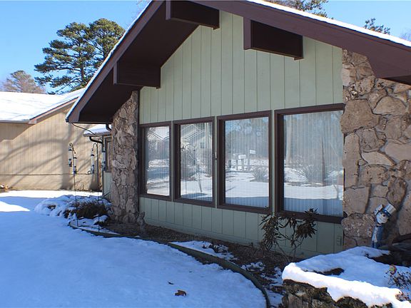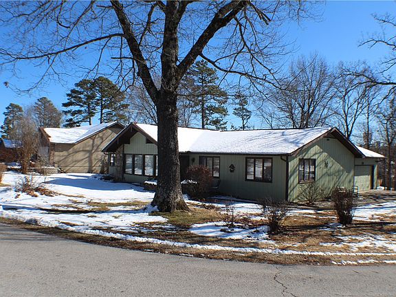 Well-kept spacious house across the street from the golf course in Holiday Island. House is originally a two-bedroom home with an addition that can be used as a bedroom or office. Addition has a closet and windows. Living room has cathedral ceilings with solid wood beam accents. Large windows in the living room will let the natural light in. The kitchen features custom cabinets with lots of extras, like cabinet pull outs and built ins. There is a laundry room with storage. Garage at the side of the house allows for entry from the garage. Garage has lots of extra storage. House has a back patio perfect for plants. Lot has several trees with some beautiful large oaks in the front. This is a beautiful corner lot near the entry to Holiday Island. Across the street from the golf course. Great starter home, place to retire or raise a family. House is wired to plug a generator into the electrical in case of inclement weather.