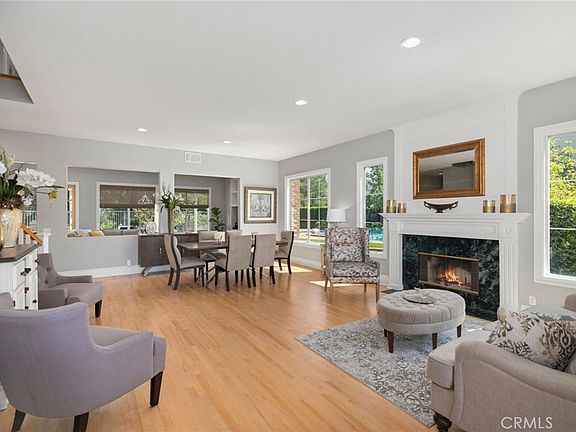 This stunning remodeled home is located at the end of a cul-de-sac with a long driveway and private location! Located in the highly sought after community of Canyon Crest estates with one of the largest lots! Huge entryway with Dutch door. Upgraded kitchen with white glass cabinets, granite countertops and center island. Adjoining family room with brick fireplace and mantle and French doors! Formal Living room with custom fireplace and wood mantle. Formal dining room with openings to the family room. High custom baseboards through-out and freshly painted. Beautiful light wood flooring through-out. Downstairs office with built-in cabinets and bathroom. Huge master suite with walk-in closet. Enormous bonus room with built-in entertainment center! Upstairs office with custom built-in cabinets. Spacious secondary bedrooms with lots of closet space. Fabulous entertaining backyard with oversized covered patio, brick flooring and Fireplace with sitting area and barbeque! Incredible pool with rock waterfall! Spacious 4 car garage! Canyon Crest offers a guard gated community with many amenities including a clubhouse, gym with locker rooms, tennis courts, pools and spa, picnic areas and playgrounds and sports courts. Lake rights to Lake Mission Viejo with boating, fishing, concerts, and a beach! Resort living at its best with the Mission Viejo lifestyle!