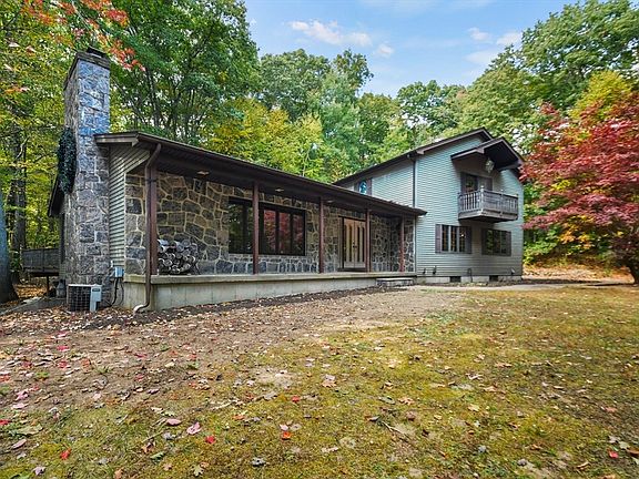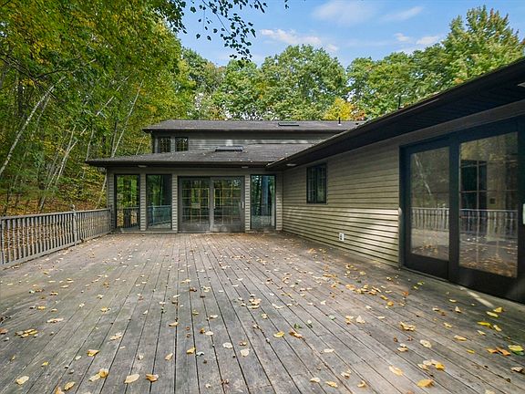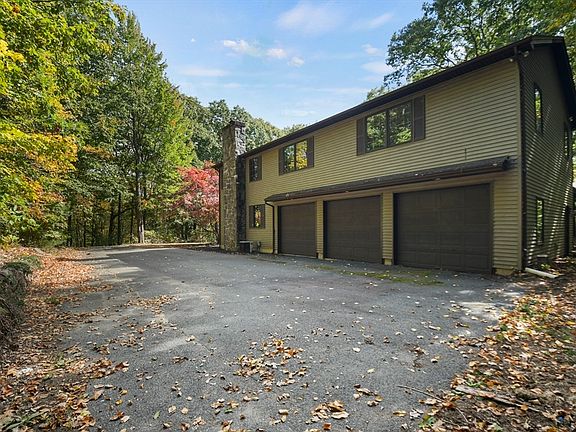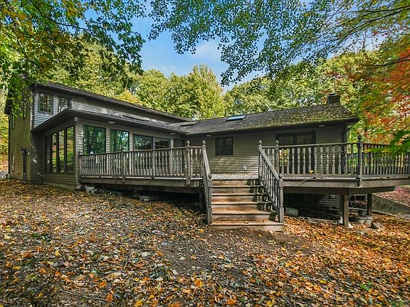 Welcome to this stunning contemporary home, set on a tranquil, wooded private lot. This expansive 4-bedroom, 4-bath residence offers the perfect balance of space, style, and convenience, with a 3-car garage and ample parking for guests. As you enter inside, you're greeted by an airy, open-concept family room featuring cathedral ceilings, recessed lighting, a cozy fireplace, ceiling fans, and beautiful hardwood floors that extend throughout the space. Flowing seamlessly from the family room is the dining area, where sliders open to an oversized back deck, perfect for indoor-outdoor living and entertaining. The kitchen is a chef's dream, offering extensive counter space, skylights that flood the room with natural light, and ample storage, ready for your next culinary adventure. Just off the kitchen, the sunroom beckons with its serene atmosphere and luxurious hot tub, creating the ultimate relaxation spot. The first floor also includes a full bathroom and a separate living room.