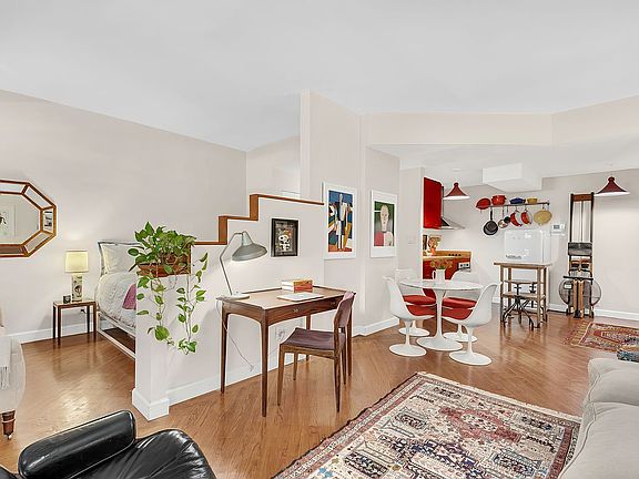 Welcome to this SPACIOUS and RENOVATED loft-style studio (convertible 1BR) located in the desirable GRAMERCY PARK neighborhood, offering low maintenance. This well-designed apartment boasts high ceilings, creating an airy and open atmosphere. A comprehensive renovation has transformed the space, featuring a sleek open kitchen equipped with top-of-the-line appliances such as a SMEG fridge, Miele electric cooktop with range hood, Bertazzoni electric oven, and GE dishwasher. The blackout shades were installed to guarantee privacy and top down / bottom-up shades to ensure maximum light. Enhancing the appeal, the studio showcases hardwood floors throughout. Ample storage space is provided by two closets ( both featuring Elfa system shelving) with an additional free basement storage, and the sleeping area can accommodate a King-size bed.