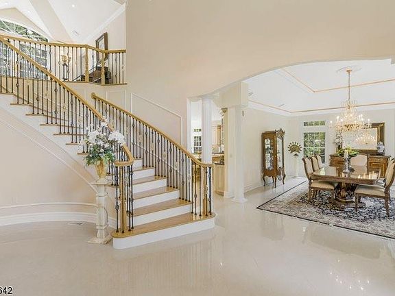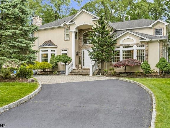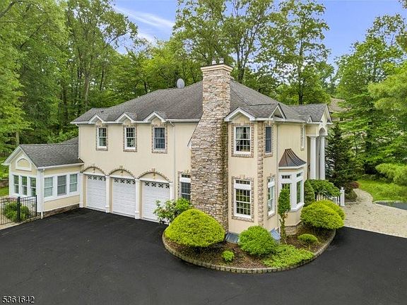 Nestled on a professionally landscaped lot, this elegant, light-filled Colonial epitomizes move-in-ready luxury. Expertly designed and meticulously maintained, this home offers a functional floor plan with timeless the grand foyer with a sweeping circular staircase, flanked by a spacious living room with a custom gas fireplace and a formal dining room with tray ceiling and cove lighting. Large transom windows flood the first floor with natural light. The gourmet eat-in kitchen features a large center island, top-tier appliances, and views of the rear patio with a serene koi pond. A cozy, centrally located family room with French doors opens to the patio and has a three sided gas fireplace.A first-floor bedroom suite with a sunroom and private entrance offers tremendous flexibility. Upstairs, the expansive primary suite boasts a gas fireplace, walk-in closet, private dressing room, and spa-like bathroom with a jetted tub. A huge second en-suite bedroom and two additional bedrooms (one used as an office) which share a well-appointed bathroom. The finished basement is a customizable blank , the lush grounds and tranquil patio create an oasis for entertaining and relaxation. This home blends serenity with access to top schools, dining, and commuting routes. A rare gem of craftsmanship and comfort.