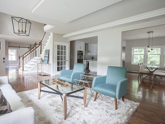 Beautifully appointed brand new full-scale renovation ideally located in coveted Linden Square & Sprague School neighborhood, literally a minute from school, shops, restaurants and train. Designed with large windows, elegant transitional finishes and an open floor plan, this gracious home provides the perfect backdrop for a contemporary lifestyle with ease. A dramatic 2-story reception foyer welcomes you into an inviting fireplaced living room with ambient lighting. Adjoining sun-splashed dining room opens to adjacent sunroom with walls of windows. Stunning white quartz and stainless kitchen with large center island and Architectural Digest worthy fixtures sets the stage for interior finishes throughout that honor timeless design traditions with clean elegant lines . An en suite bedroom and a private office complete the 1st floor. 2nd floor offers a gracious master suite with deck and 3 additional bedrooms. Newly finished lower level game room offers endless possibilities!