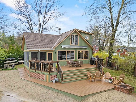 OFFER DEADLINE MAY 12th 8pm MONDAY- Lakefront Paradise Awaits- Turnkey, Year-Round Dream Home! Welcome to your slice of lakeside heaven! Nestled in a peaceful and private cove, this fully updated, year-round lake house offers the perfect blend of comfort and adventure. Boasting 3 spacious bedrooms and a separate bunkhouse as well as 2 beautifully updated bathrooms, this home is the perfect retreat for making unforgettable summer memories. The open-concept living area is filled with natural light and sweeping views of the water, creating a warm and inviting atmosphere year-round. Step outside and be amazed by gorgeous screened porch or expansive deck with motorized awning. Wander down to the 124' of sandy beach — ideal for lounging, beach games, or building sandcastles with the kids, then rinse off in your very own outdoor shower. A large dock extends into the pristine waters, ready for all your lake adventures. The lake is motorboat-friendly, opening the door to tubing, water skiing, fishing, and cruising. And don’t miss the beloved 4th of July boat parade, a festive tradition that brings the whole lake together in celebration. This property is being offered with potential to purchase furnishings and even a boat, making it immediately ready for your enjoyment, just bring your swimsuit and you’re ready to relax! Whether you’re looking for a summer escape, a weekend hideaway, or a full-time lakefront lifestyle, this is a rare oppoptunity to own a piece of paradise!