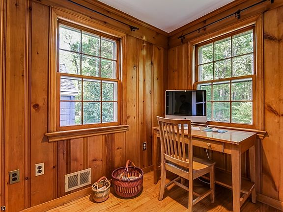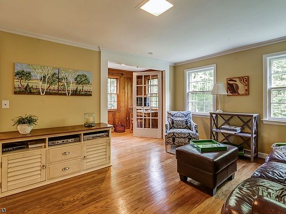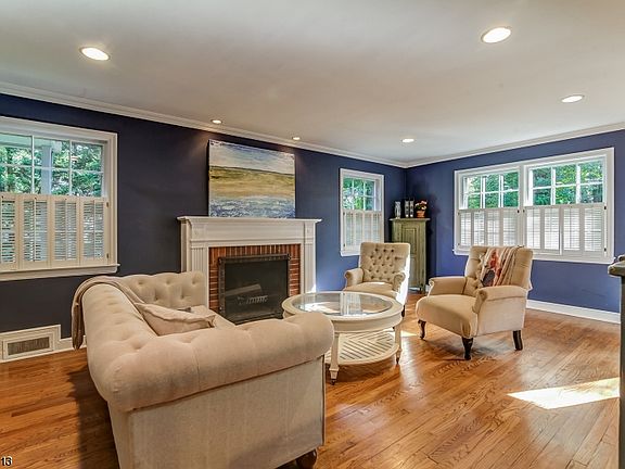 Sunny, updated 4 br, 2.1 bath Colonial backing to Green Acres in desirable Manor Section. Spacious living rm w/fireplace, dining rm, kitchen w/breakfast nook & newer stainless appliances, family rm, office w/built-ins, 4-season sun rm. Second level w/4 bedrooms & 2 full baths (main bath w/two sinks). Finished basement w/rec rm w/ smart TV & game/exercise rm. Newer systems & roof. Additional storage area in two-car garage. Level yard w/patio--perfect for entertaining, play & gardening. Private but just minutes to town, Midtown-Direct commuter trains & award-wining schools. Chatham High School voted #1 HS in NJ Monthly 2016.