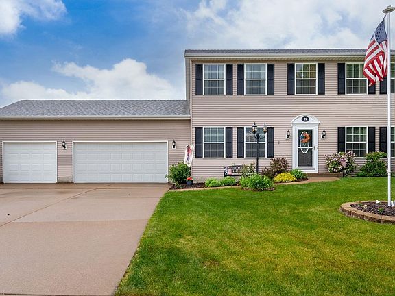 If you need space, this home has what you are looking for. 4 bedroom, 4 full bath home. Spacious eat-in kitchen with gorgeous quartz countertops and breakfast bar. Main floor laundry room was transformed into a nook with bench, perfect for end of day catch all. Laundry room was moved to upstairs for more convenience (could be transformed back into a 5th bedroom). Beautiful spacious formal dining room leads into the living room with gas fireplace. Main floor bedroom is convenient for guests and is next to a full bath. Main bedroom upstairs has an ensuite, walk-in closet AND another surprise. An 8.2x8.6 office that could be changed into an additional walk-in closet. Anyone would enjoy the other two spacious bedrooms upstairs. Basement is finished with a rec room, exercise room with full bath, and a HUGE storage room with egress window. .52 acre lot is partially fenced with patio area and firepit. Whole yard has invisible fencing, collar does not stay. Did I mention there is a newer Honeywell generator AND heated 3 car garage with cabinets and counters? Truly a MUST HAVE