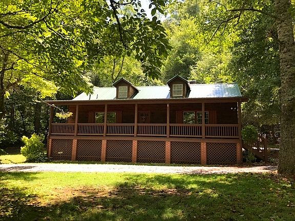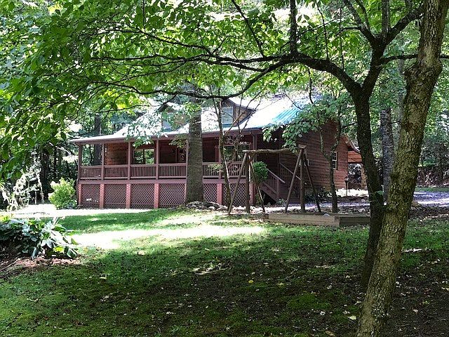 Are you looking for a piece of property with a creek that has easy access and a large flat yard? This is it! A one of a kind find! 3.3+/- acres on bold Betty's Creek with a 2/2 cabin ( a bonus room too). Living, dining and kitchen surround the native stone fireplace with a wood stove insert. 2 bedrooms and 2 bathrooms on main level with an upper level bonus room complete with closet and private balcony. Large covered front porch with rockers and a porch swing! Perfect place for enjoying the sounds of the rushing creek. On the rainy days, you will enjoy the pitter patter of rainfall on the new metal roof. HUGE covered patio area on backside of home. Perfect place for entertaining friends rain or shine. The 3.3 acre parcel is made up of 2 lots so you have plenty of room to add a guesthouse, walking trail, etc. Fire pit by the creek is ready to go , just bring the camping chairs and s'more supplies! New Trane Heat Pump 2/18 This home is a pleasure to show so give me a call !!
