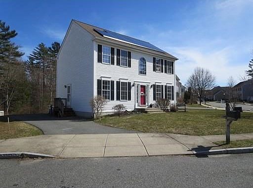 Walk in the front door and you will notice the spacious 2 floor foyer with natural light from the large palladian window! This well-maintained 3 Bedroom Colonial features a spacious living room, dining room, & eat-in kitchen. Slider leads to a large deck over looking the adjacent woods. Half bath w/Laundry area on main level makes life a bit easier! Hardwood floor in the formal dining room. 2nd Level has 3 good-sized bedrooms including a large master bedroom w/cathedral ceiling, a full bath and a walk-in closet. Full Basement w/good ceiling height & walk-out door partially finished for a play area or additional guest sleeping quarters. Basement features office area and a gas fireplace with a wall mounted thermostat as a heat source. Low maintenance exterior vinyl siding & windows. Well-located home in lovely subdivision with easy highway access. Passive solar panels help to reduce the monthly electric bill. Come fall in love and make this home yours!!!