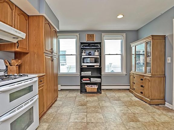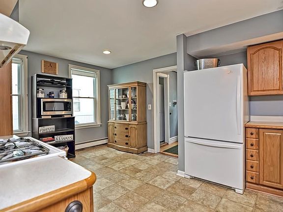 As you walk thru the front door of this charming home with plenty of character, you will be impressed with the size and unlimited possibilities this beautiful home offers. The grand foyer leads you into a spectacular sun-filled home with an open floor plan. If you enjoy entertaining, this home is ideal. Updated kitchen with oak cabinets & island w/sink that opens to a spacious dining room. Living room with a gas stove, hardwood floors, and pocket doors. Laundry conveniently located on the first floor off the kitchen. Full bath on first floor with additional storage area. Two sets of stairs leads you to the upper level consisting of 4 generous sized bedrooms and a full bath. Walk up staircase to unfinished third floor. Great area for storage or potential for additional living space. Roof, windows, and electrical have recently been updated. Two car garage and patio. Short walk to train station, school and downtown and minutes to 95.