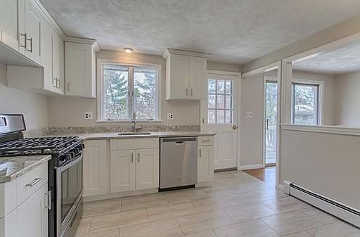 Here is your chance to own an updated three bedroom, 2 full bath home in a coveted neighborhood in Acton center! Entertaining is easy with a BRAND NEW KITCHEN that features granite countertops, stainless appliances and shaker-style cabinets with soft close doors. The open concept fireplaced living room with hardwood floors flows easily to the dining room with sliders to the deck. All three bedrooms feature gleaming hardwood and double closets. Both renovated baths boast decorative vanities and ceramic tile floors. Spacious first floor family room with second wood burning fireplace. Plus a large office with gleaming hardwood floors and recessed lighting. Plenty of room to play in the large, level backyard with stone wall boundary. Fresh interior paint, low maintenance vinyl siding and Andersen windows add to the appeal. All this in a well-established neighborhood close to the Acton library, historic center, Acton Arboretum, shopping, commuter rail and Route 2.