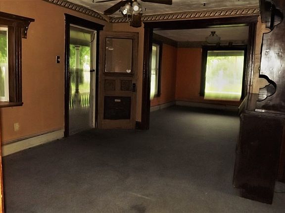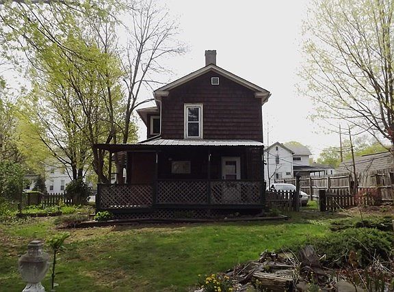 Home offers many nice features and priced to make this a worthwhile project. Over-Sized In-Town Lot planted with many Perennials. Home offers spacious Wrap-Around Porch and Covered Back Deck, Natural Woodwork throughout Foyer, Staircase, Solid Wood Doors, Flooring and Trim Work throughout. Large Kitchen w/Pantry, Formal Dining Room, Living Room plus Den and Half Bath on First Floor. Front and Back Staircase to Upper Floor, Spacious Rooms. Newer Vinyl Replacement Windows. Large Basement with plenty of Room for Storage and Workshop Area. Many updated Utilities, Furnace needs repair.