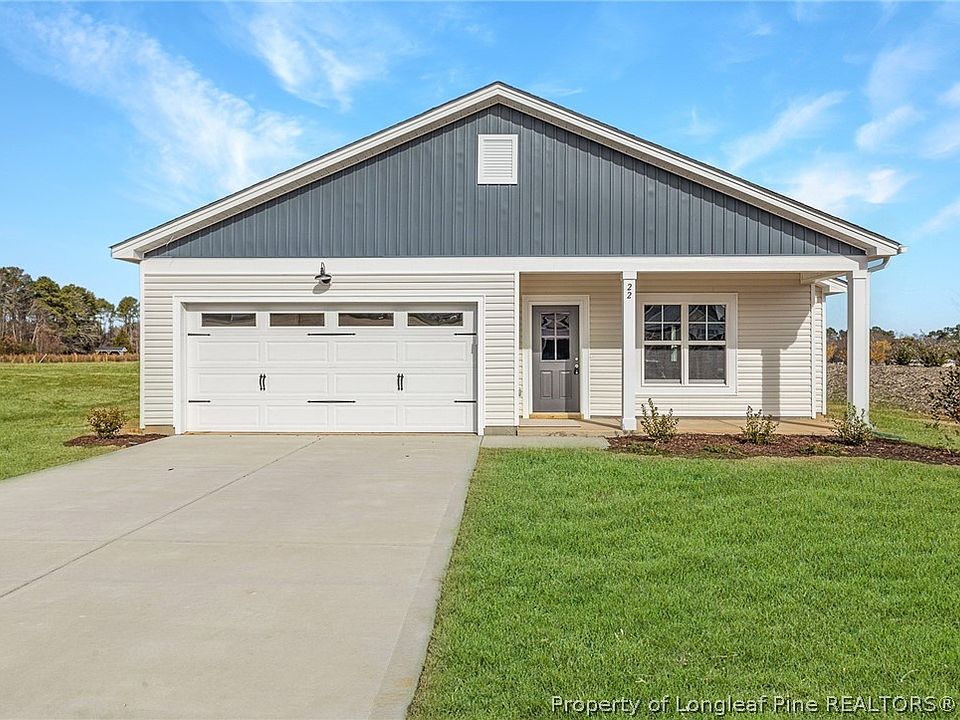 New construction built by A & G Residential! Welcome to your new ranch-style home nestled in the stunning rural outskirts of Lillington. As you step inside, you'll be greeted by the spacious open-concept design of kitchen, living and dining. Relax by the inviting gas fireplace showcased in the living room, or prepare meals in the feature rich kitchen with granite countertops and sleek stainless steel appliances. This home boasts exterior charm and premium durability with 30-year architectural shingles, premium vinyl siding, and a professionally landscaped yard. It's a place where you can enjoy the serene outdoors on your covered porch. Inside, you'll find comfort and convenience with owners suite, ensuite and a spacious laundry room.Quality assurance is woven into every aspect of this home. Less than 10 minutes to Raven Rock State Park!