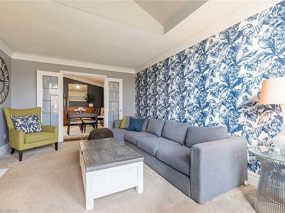 Welcome to 22 Jutta Crescent! There is too much to list in this fabulous oversized home. Included in the approx. 3450 square feet of finished living space are four large bedrooms (two with walk-in closets), two full bathrooms and an abundant amount of living areas. Upon entering this home, you will be greeted with an endless amount of warmth, comfort, natural light and impressive decor that you will not want to leave! Plenty of renovations have been completed to this home including the beautifully appointed custom crafted kitchen (2019) with a 9-foot-long island for endless food prep! It is further completed with vaulted ceilings, ample cabinetry, quartz countertops, a sleek & timeless backsplash, and oversized sink with upgraded plumbing & lighting fixtures. The included appliances are all updated and include the gas stove with flute hood vent. Your entertaining quarters consists of this amazing kitchen closely connected to your updated living & dining space and overlooking the large family room. The family room and kitchen both provide direct access to the rear yard with pool and upgraded composite deck (2019). The upper-level features a fully renovated bathroom with glass and tiled shower (2023), newer flooring, feature walls and a cozy fireplace in the primary bedroom. The lower level is just as lovely with the eye-catching gas fireplace, hardwood flooring, another full bathroom, and fourth large bedroom that can also serve as an awesome office space. The fully finished basement offers a full storage room, and even more space that is perfect for anyone to hangout, workout, craft, or even host a game of hockey with its indoor hockey centre! Additional updates include the pool liner (2019), front window and back sliding doors (2018), front porch (2023), back fence (2019), roof (2018), exterior siding (2020), and A/C (2022). Located in a lovely quiet neighbourhood, close to all amenities and highway access you cannot ask for more. This home is a MUST SEE!