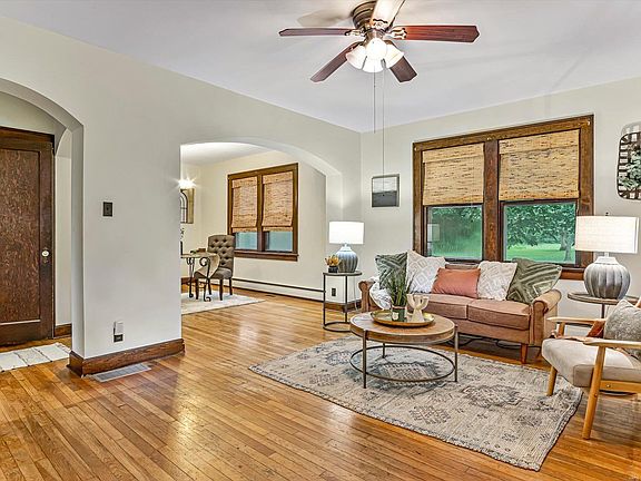 OPEN HOUSE 10/21 1:30-3:30PM! Welcome to this beautiful, move in ready bungalow nestled on a quiet street- on just under an acre wooded lot- featuring a welcoming covered front porch perfect for sipping coffee, multiple back patios, detached garage/workshop, partially fenced area, outdoor brick fireplace for entertaining & more! Front door leads into a spacious, full of charm living room w/ original hardwood floors& beautiful archways- which opens into the dining room& hallway. Main floor also hosts a bedroom, full bathroom,& beautiful kitchen with lots of natural light(renovated 2023). Upstairs is a large second bedroom (new mini split w/ heat pump& new carpeting in 2023). The basement is the star of the show-boasting full renovations(2023), to include a spacious master bedroom w/ walk in closet, laundry room, full bathroom, storage room, & bonus room. Basement conveniently walks out to pull under garage. Home has passed county occupancy. Motivated seller- schedule your showing today! Additional Rooms: Mud Room