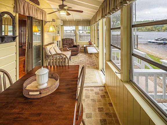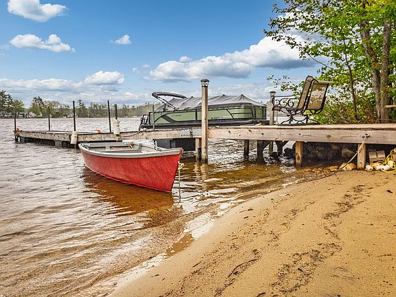 Major price improvement on this waterfront get-away!  Rustic charm meets modern convenience in this three season cottage on desirable Milton Three Ponds!  On the main level you will find a well-equipped kitchen, a living room with a fireplace insert, a bedroom, a half bath, a separate shower/laundry room and a large enclosed porch with a wall of windows overlooking the lake!  The porch hosts a dining area and an additional sitting area.  Upstairs you will find a very large bedroom with room for several beds to sleep lots of children and/or guests, as well as a bonus room to use for whatever you'd like.  The home has 5 mini-splits that provide air conditioning for those hot summer nights and heat that help extend the season late into the fall and early winter.  The home has been incredibly maintained - electrical was replaced in 2020, the water heater in 2022 and the septic system was replaced in 2008.  The property boasts 50' of water frontage, a beautifully landscaped yard and a sandy beach! Swim, boat, fish or enjoy the gorgeous sunrises from your own private dock! There's also parking for 5 vehicles and a large shed for all your water toys.