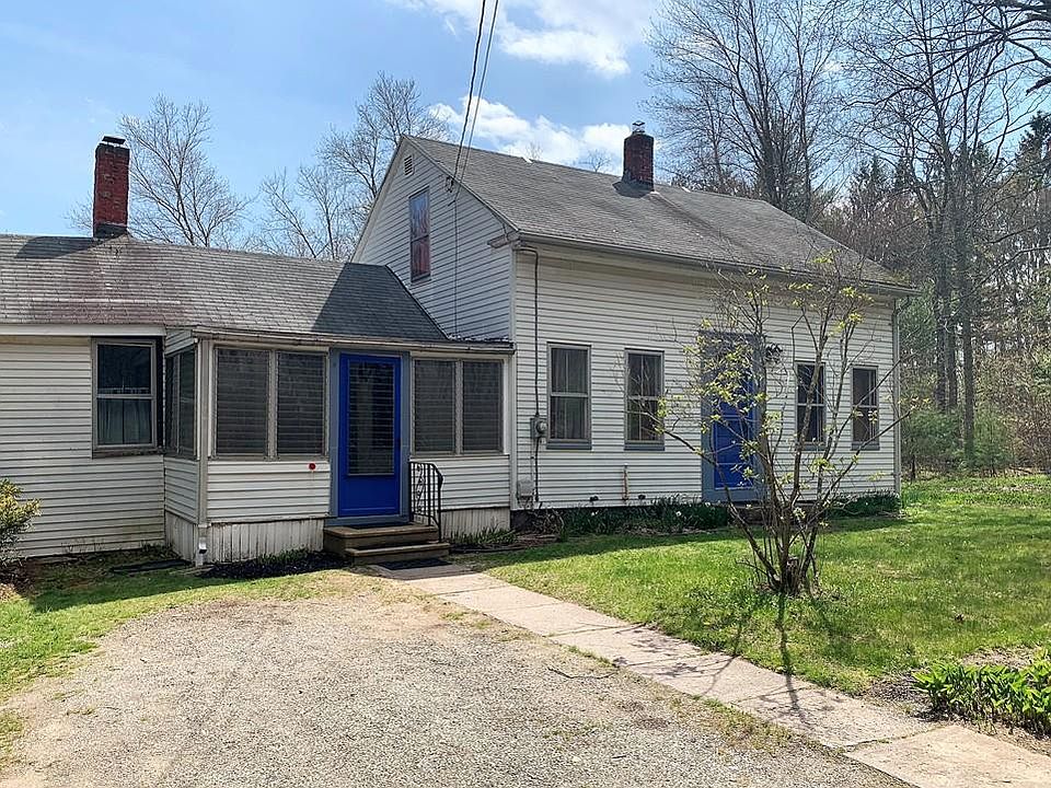 This 2-story farmhouse exudes character with original wide-plank floors throughout! Situated on 4.2 acres just steps from Knights Pond, enjoy country living in a convenient, friendly neighborhood minutes from Belchertown/Amherst centers. Features include spacious living/dining rooms, first-floor laundry, large enough yard for garden, chicken-coop, dog-run,etc. Kitchen boasts a farmhouse sink overlooking the sunny backyard, walk-in pantry, freshly-painted cabinets and new dishwasher. Screened in rear porch is perfect for entertaining at summer cookouts. Cadwell Forest/Reed Conservation Area and the Quabbin Reservoir/Swift River boat launches are very close by. Enclosed front porch is an ideal mud-room and attached barn is perfect for storing gear/equipment. Plenty of off-street parking, room for a boat/camper and a storage shed for lawn/snow equipment. Many recent mechanical updates. One year Home warranty from date of closing. There are few choices for this kind of location and value!