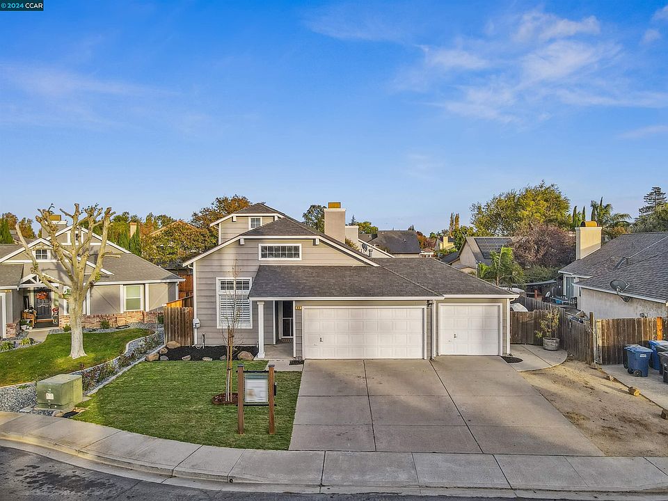 Presenting 22 Korbel Court, a meticulously updated home located in the sought-after Vintage Parkway Oakley neighborhood! This gorgeous three bed + two bath residence offers over 1600 sqft of living space and is nestled on a quiet cul-de-sac, offering both tranquility and convenience. Inviting you into a bright + airy floorplan, centered around a recently renovated kitchen, complete with warm white cabinets, quartz countertops, breakfast bar and focal island. Elevated ceilings, LVP flooring, an oversized primary suite, and updated baths complete this stunning find! Do not miss the rare 3-car garage and off-street parking features, and fully manicured yards surrounding the home. Located just minutes from downtown Oakley’s shops, eateries + city parks, and less than a mile from the scenic Big Break Preserve, this home offers an exceptional combination of modern-day and serene living. OPEN HOUSE FRIDAY 11/8 4-6PM, SATURDAY 11/9 1-3:30PM and SUNDAY 11/10 12-2PM