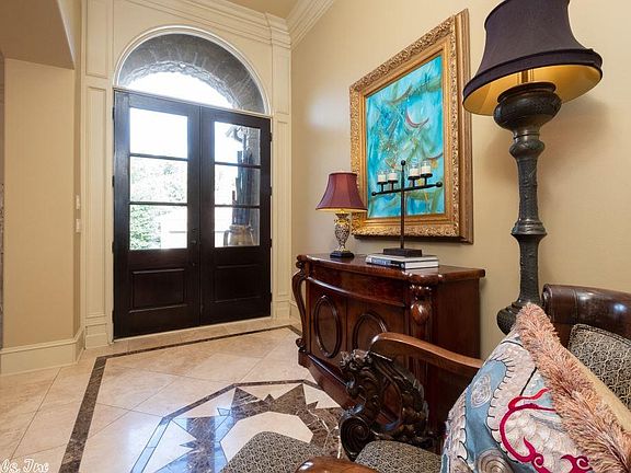 Located in a gated subdivision, this stunning home features high ceilings & entry with inlaid natural stone floors extending thru-out the first floor living & dining areas.Tall windows in the great room & den with gas log FP provide views of the outdoor living space. Fine amenities in the kitchen like: granite counters, double ovens, gas cook top & beautiful cabinetry. Spacious Master suite has a sitting or office area & a luxurious spa bath. Bonus room/4th bedroom up with 2 guest BR's & bath. 3 Car garage