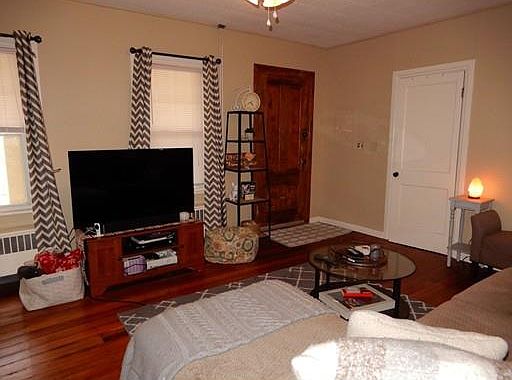 Enjoy single floor living in this updated 2 bedroom apartment in vintage home with front porch on country road setting. Updated Kitchen has room for dining & opens to private deck & grassed backyard area. Relax in Living Room with 2 windows that allow lots of natural light, refinished hardwood floor and oversized closet. Master Bedroom has 2 closet areas, wall-to-wall carpet & overlooks backyard. Second Bedroom has three windows, good-sized closet and hardwood floor. Laundry is conveniently located in kitchen (washer/dryer available!). There's also extra storage available in lower level. Rent includes heat, hot water, snow removal, trash removal & landscaping! Please Note: No Smoking! Dogs allowed - must be approved by owner! Convenient to Routes 95/495 & Patriot Place. Available June 1!